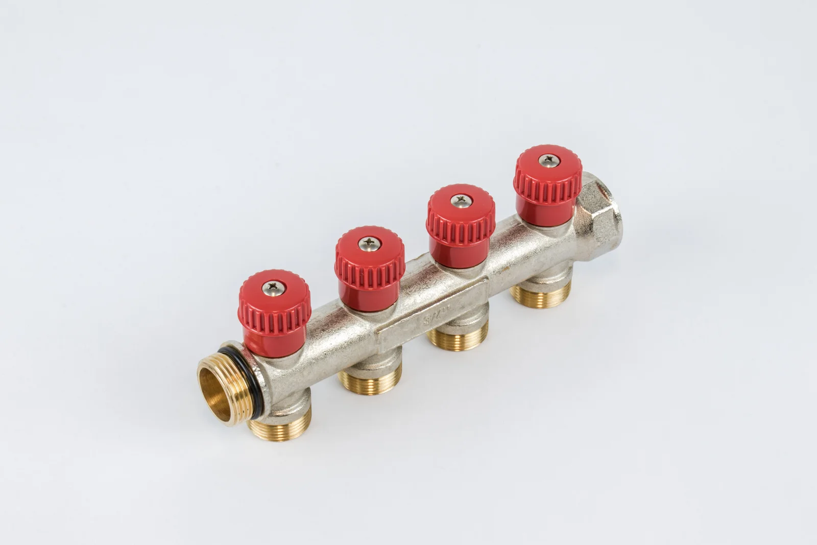 Begetube collector CV/sanitair warmgeperste kollektor 3/4 + 4 x M24 met ingeb. kranen CHROME met O-ring – ROOD