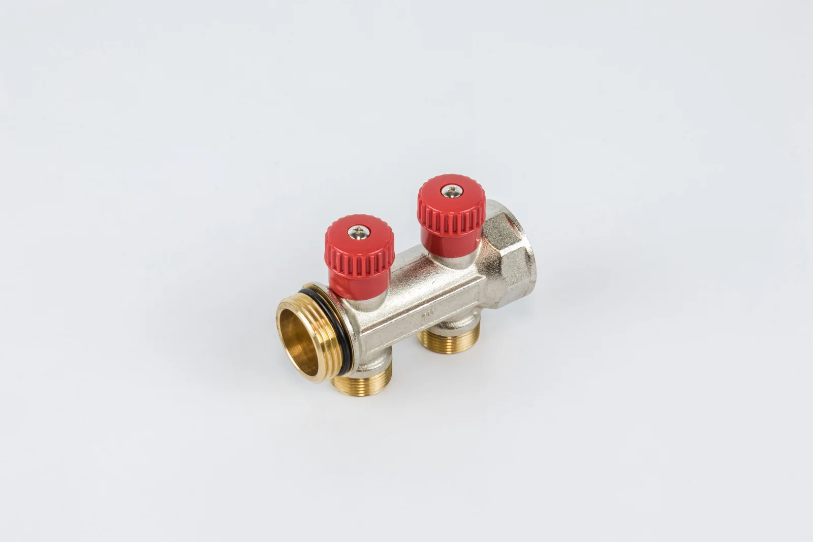 Begetube collector CV/sanitair warmgeperste kollektor 4/4 + 2 x M24 met ingeb. kranen CHROME met O-ring – ROOD