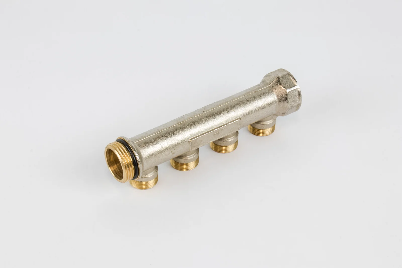 Begetube collector CV/sanitair warmgeperste kollektor 4/4 + 4 x M24 messing begetube CHROME met O-ring