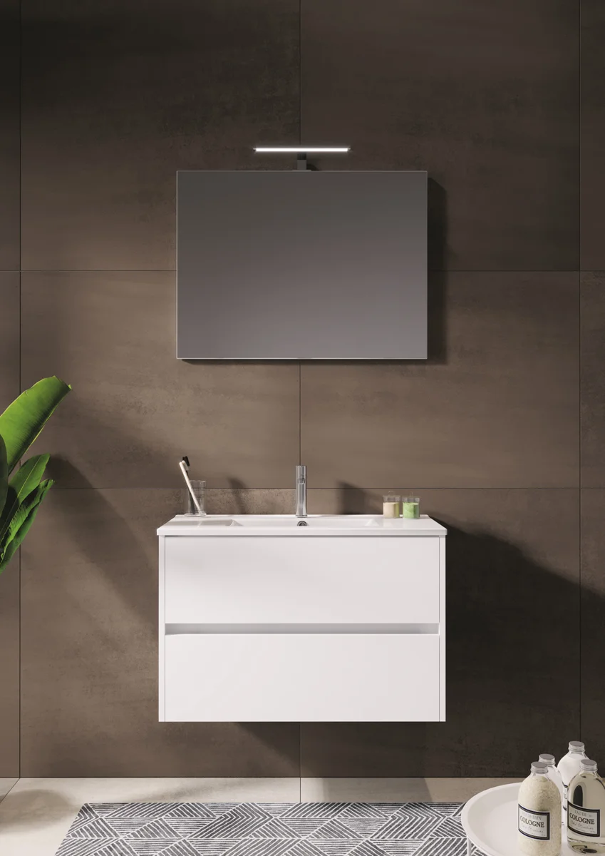 Riho wastafelmeubel Porto PORTO meubelset 80cm 2 lades,enkele wastafel wave in hoogglans wit,spiegelpaneel,led verlichting