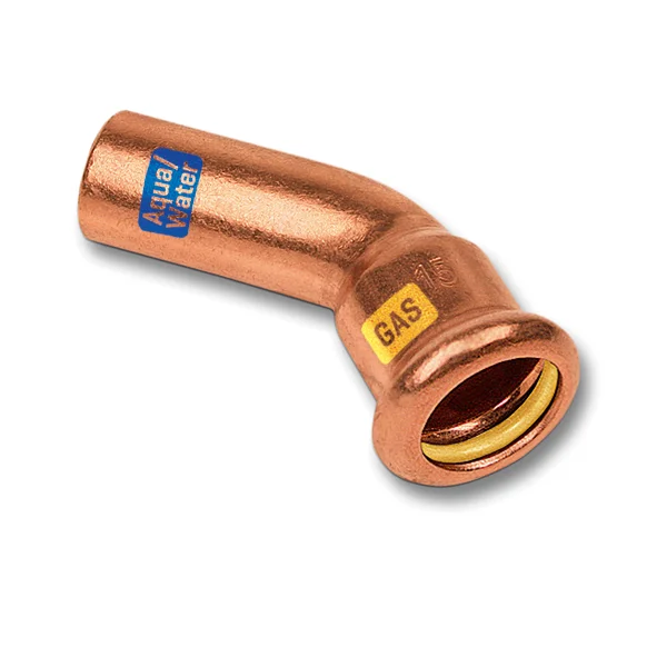 Verwarming > Fittingen en flexibels > Persfittingen > Sanha > Gas / Water (Hydrogas) > Insteekbochten > Insteekbochten 45