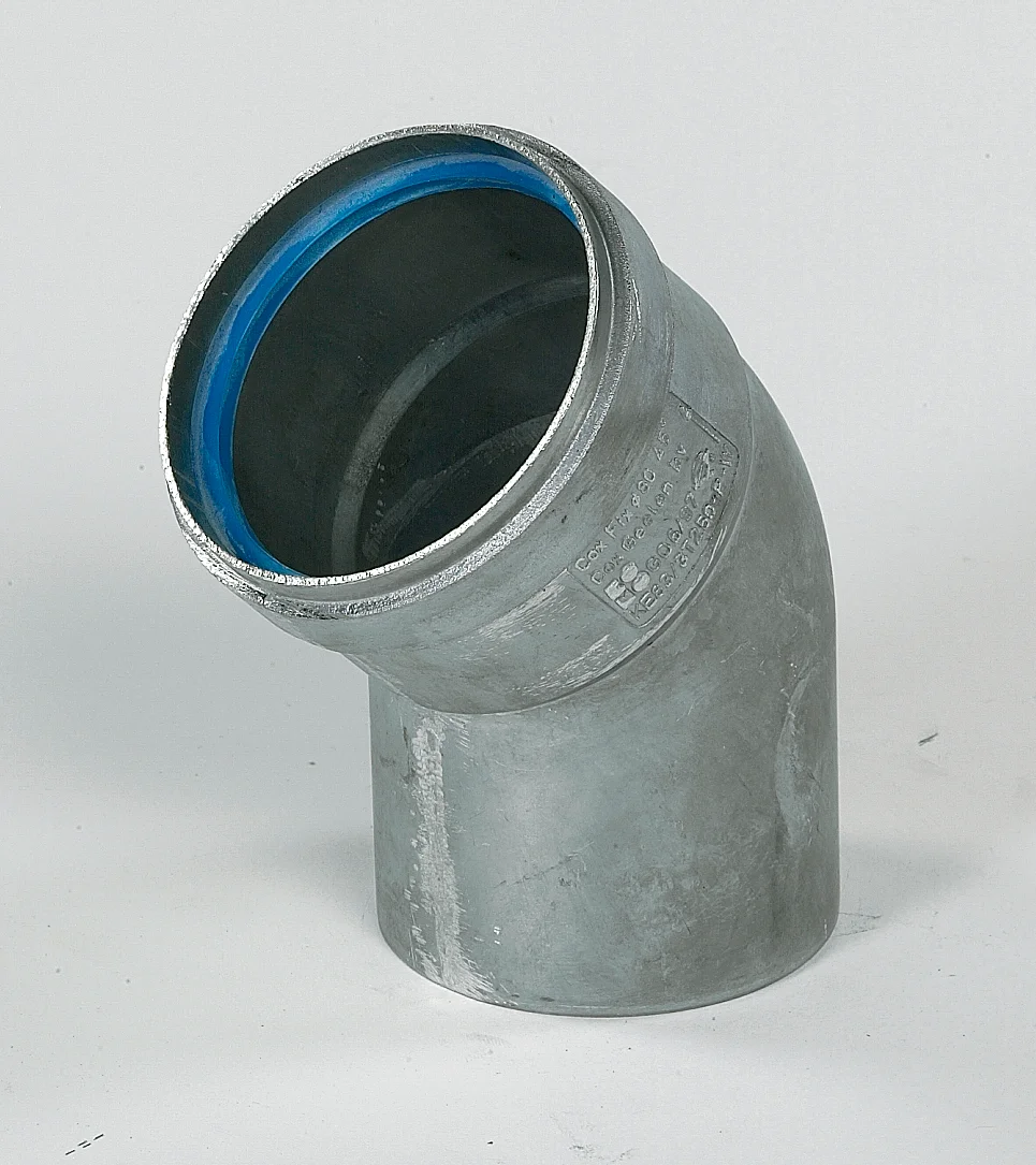 Ubbink enkelwandige rookgashulpstuk 2 aansluitingen Rolux 4G aluminium bocht 45 gr bi/bu 80 mm naturel dikw. 1,5 mm afvoer HR+ & HRtop