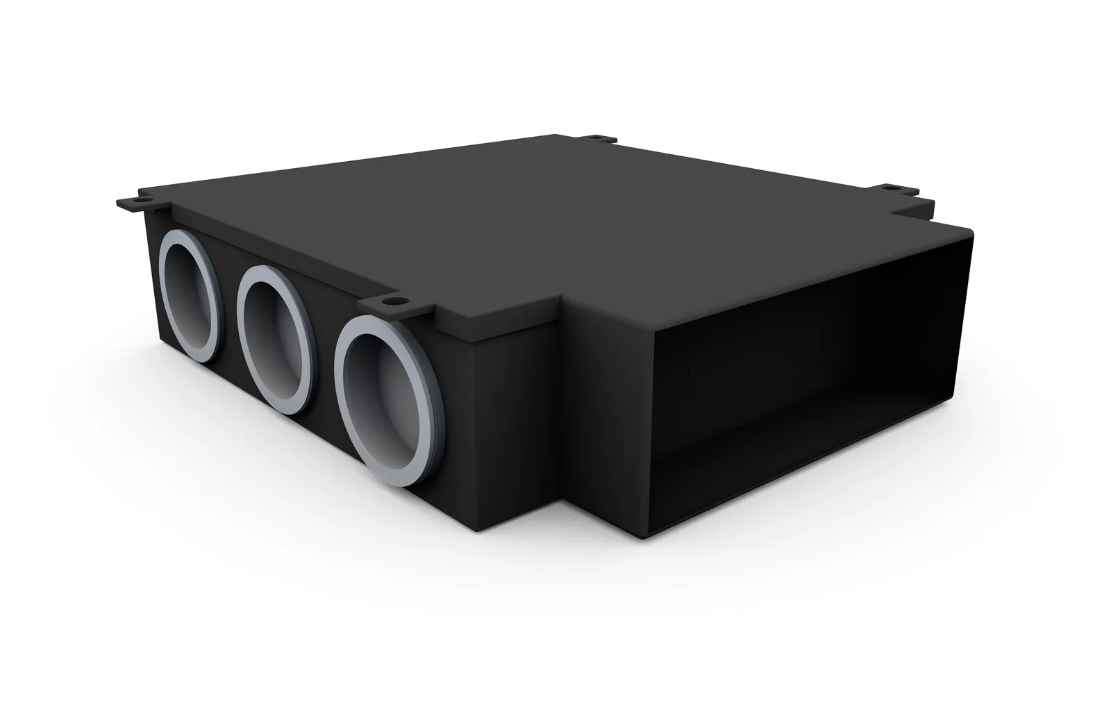 Ventichape verdeelbox ventilatie VentiFlex 70 hoofdcollector 9 x63/70mm met aansl 204×80 naar metalen koker Ventiline
