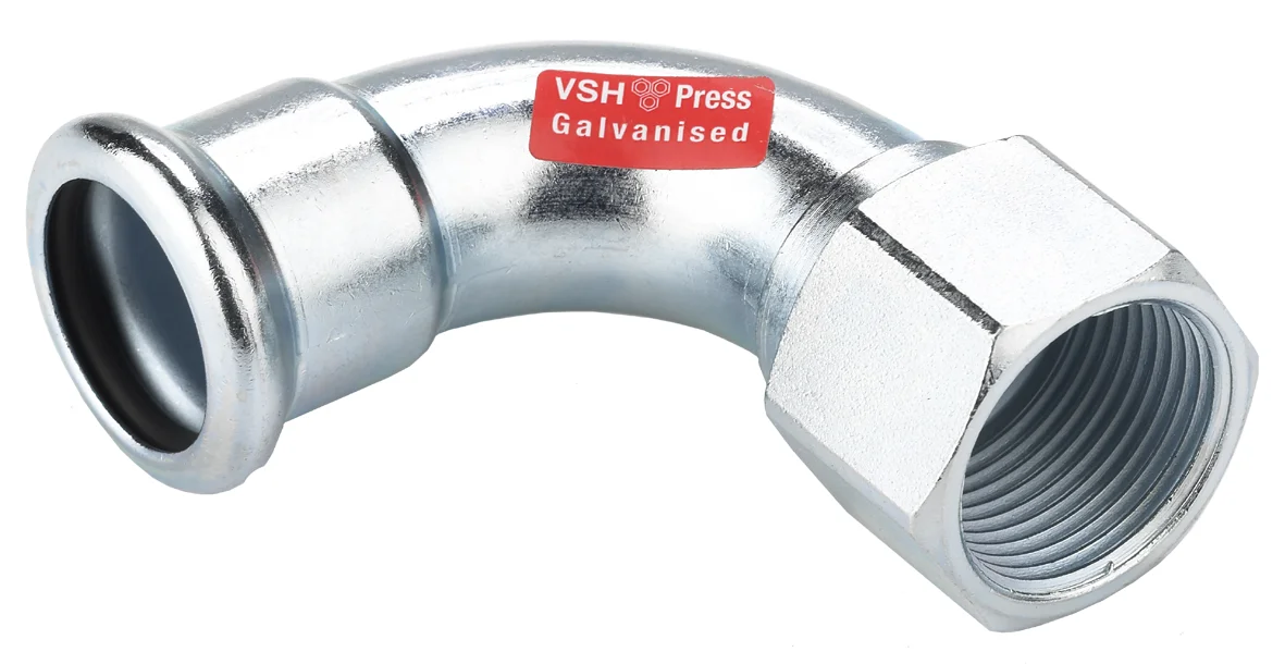 VSH persovergangsbocht XPress Staalverzinkt C1438 pressfit. VSH bochtkoppeling 90 22×3/4 staal verzinkt C1438